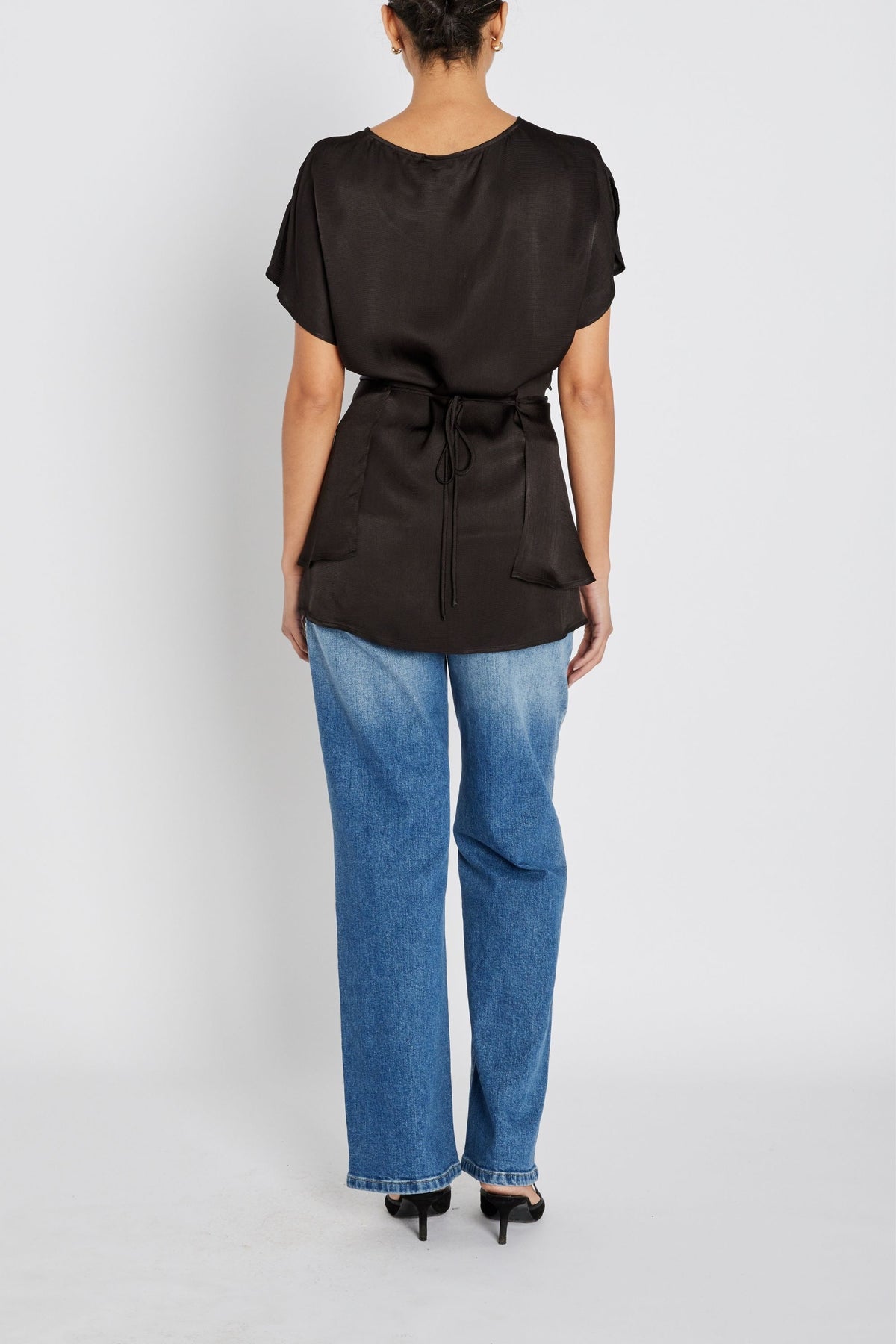 AcaraBBVelma bluse er en feminin bluse i glat viskose med draperet front, korte ærmer og asymmetrisk afslutning. Designet giver et elegant og moderne udtryk.