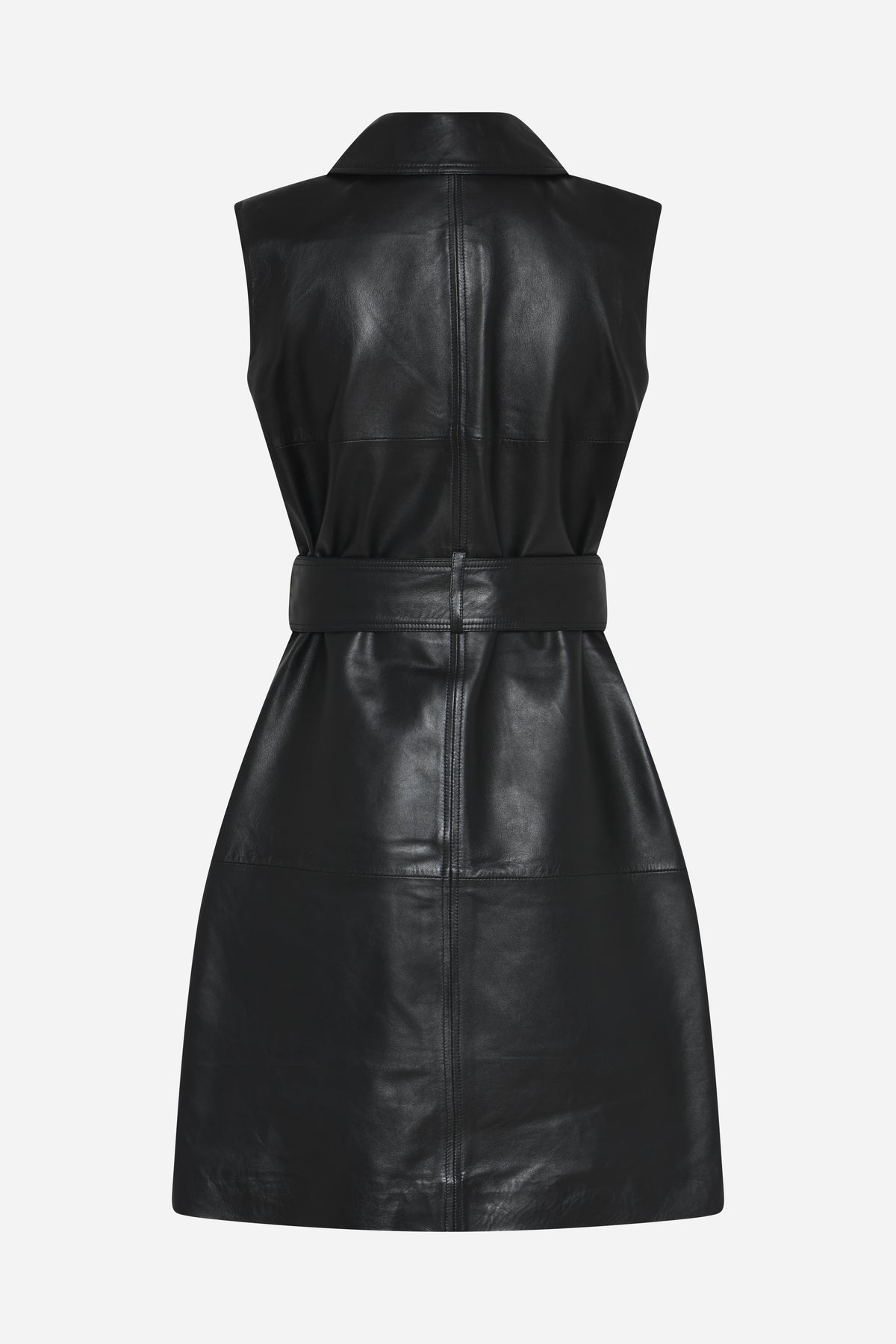 SoftBBToria læderkjole er en feminin kjole med figursyet pasform, der skaber en markant og elegant silhuet. Designet i læder giver et eksklusivt udtryk med fokus på form og detaljer.