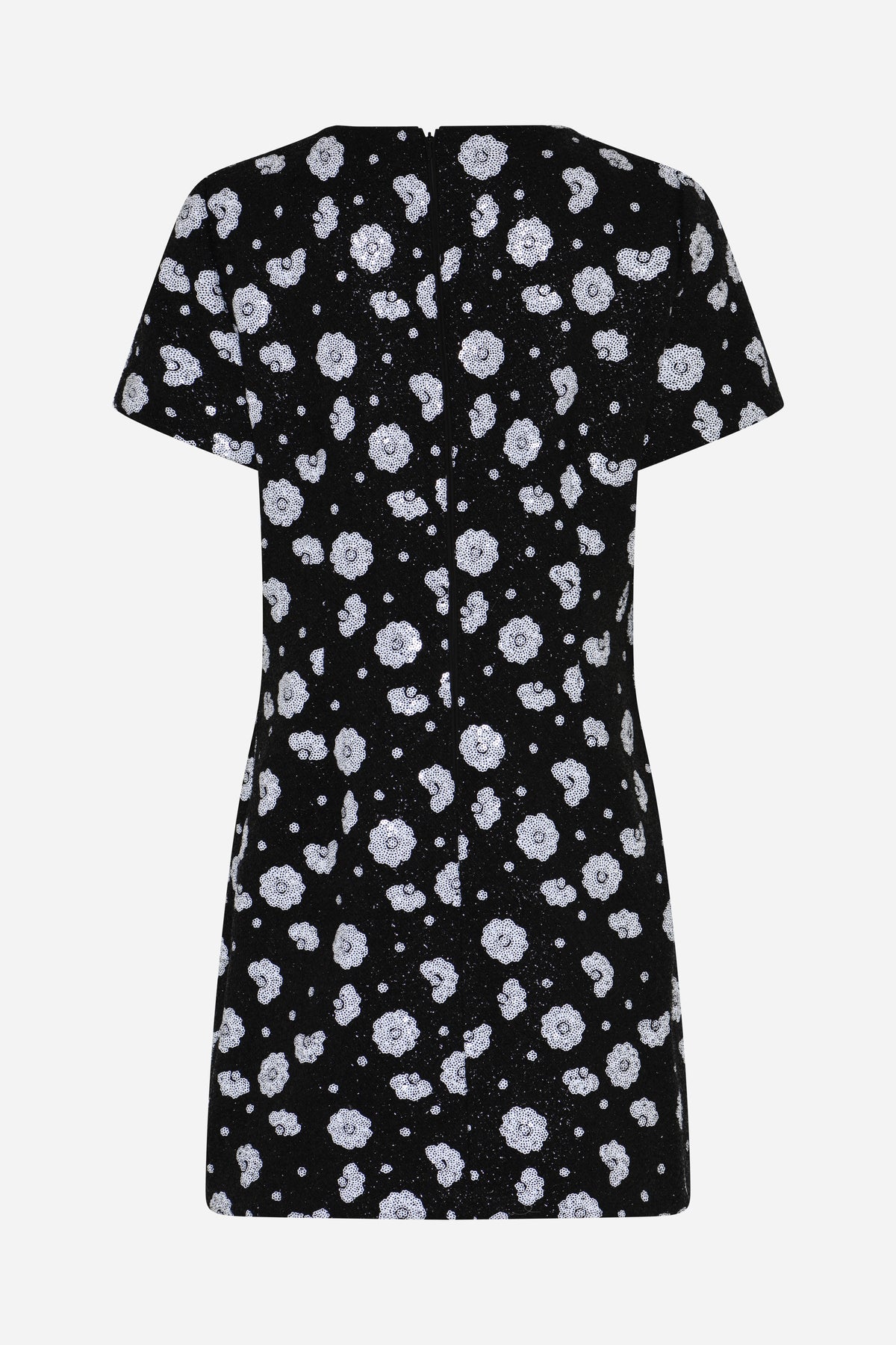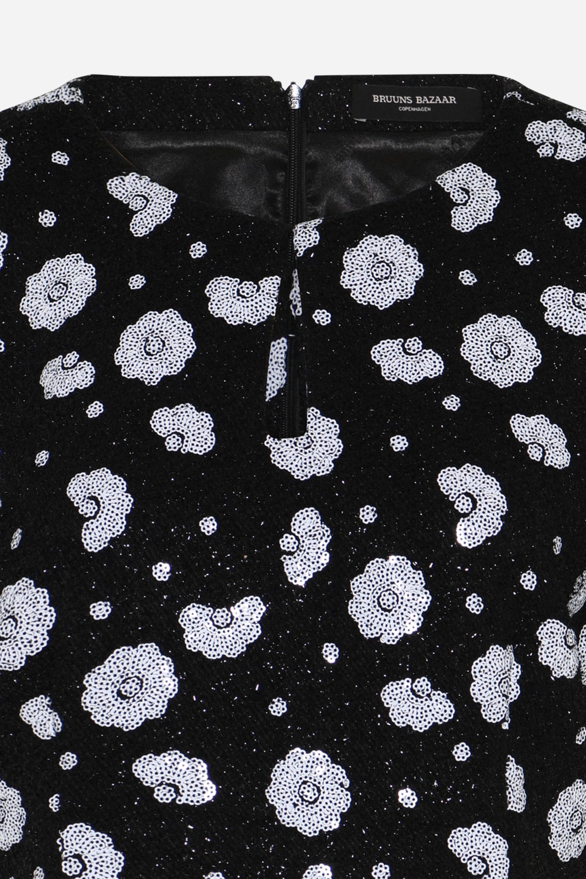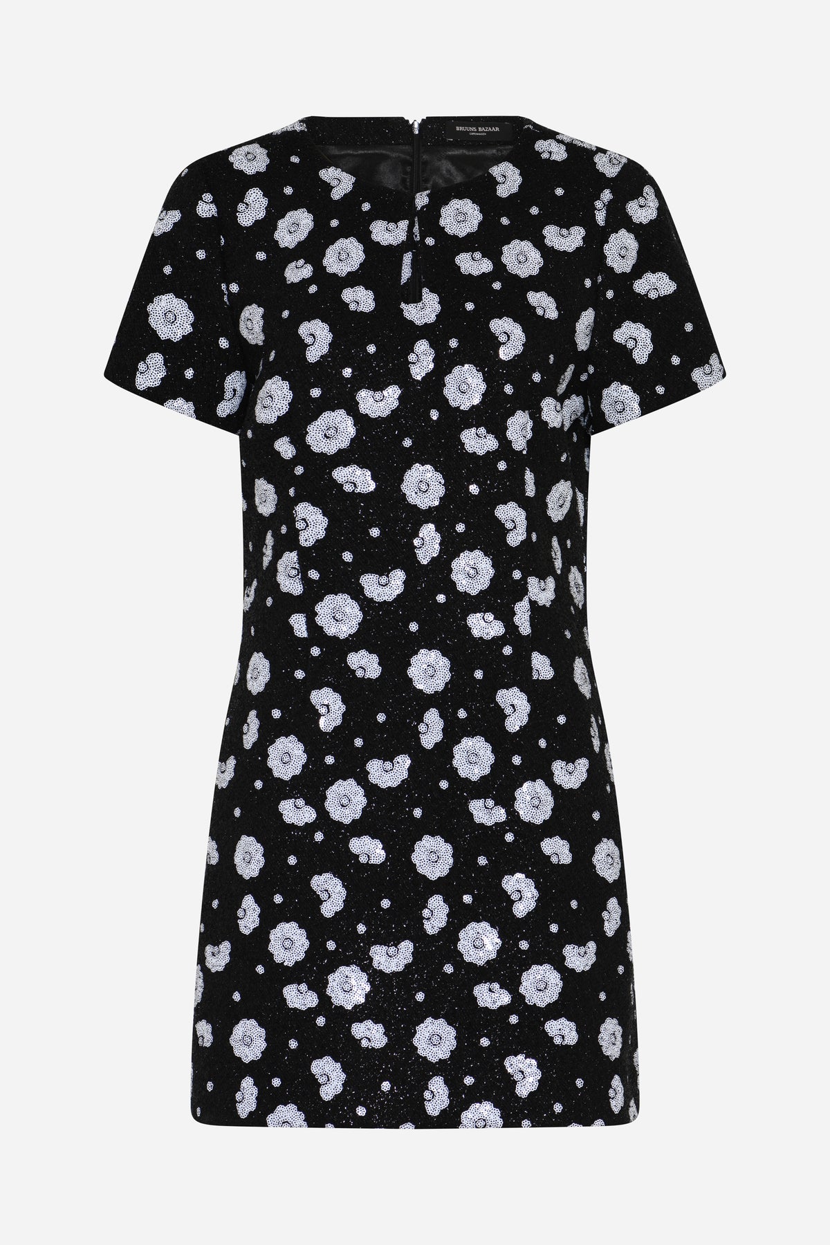 BrittleBBSilja kjole er en kort kjole med korte ærmer, lige pasform og fuldt pailletbroderi i blomsterdesign. En iøjnefaldende style med glitrende finish og moderne elegance.