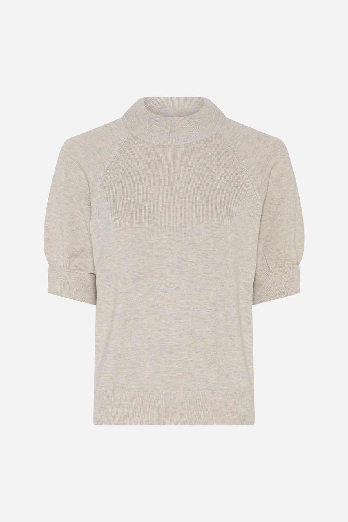 AnemoneBBHalias strik er en bluse med korte pufærmer, ribdetaljer og høj rund hals. Den har en feminin silhuet med en klassisk og alsidig udstråling.