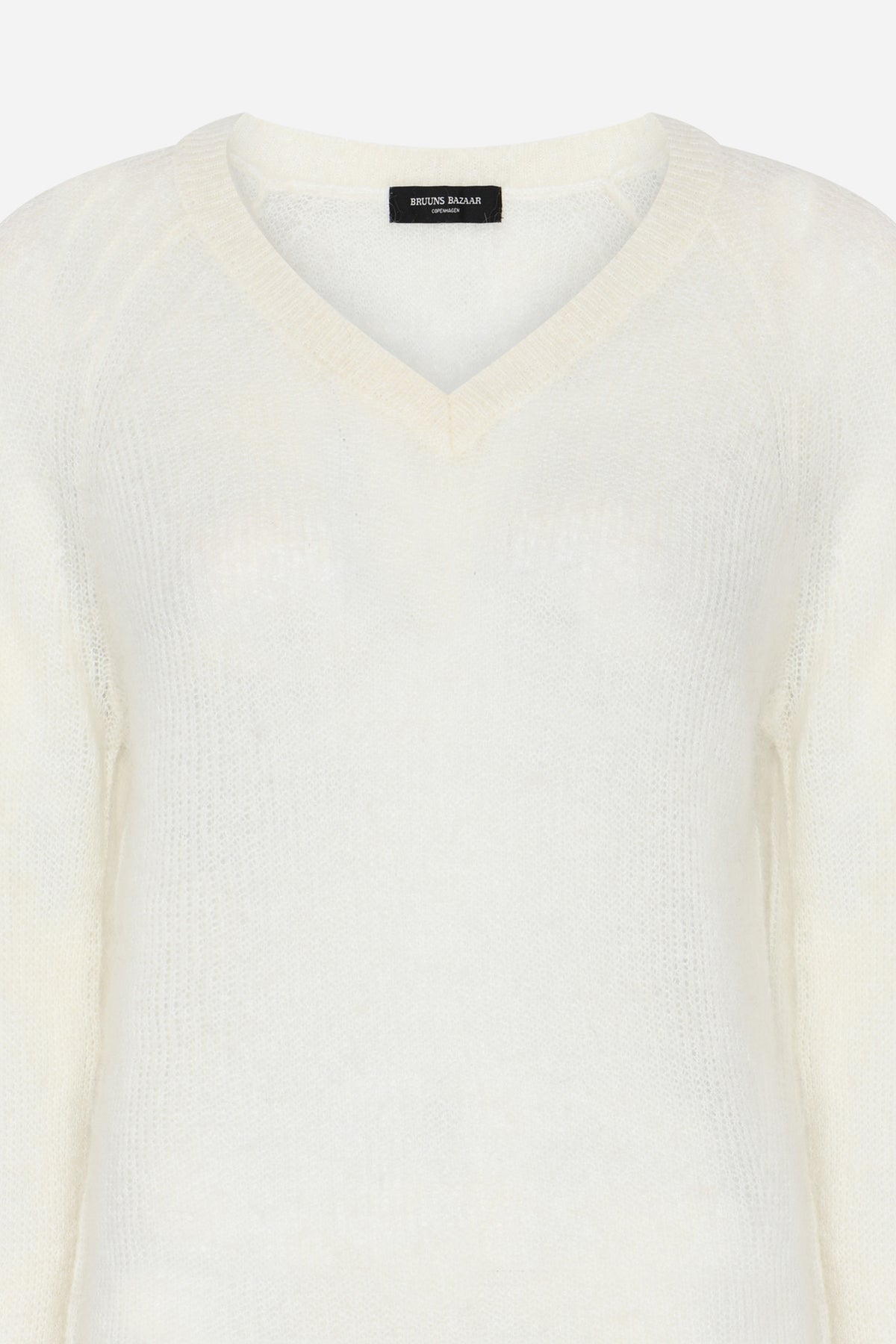 FluffyBBAmera strik er en blød og feminin striktrøje med V-udskæring og lange ærmer. En enkel og tidløs style til hverdagsbrug og fest.