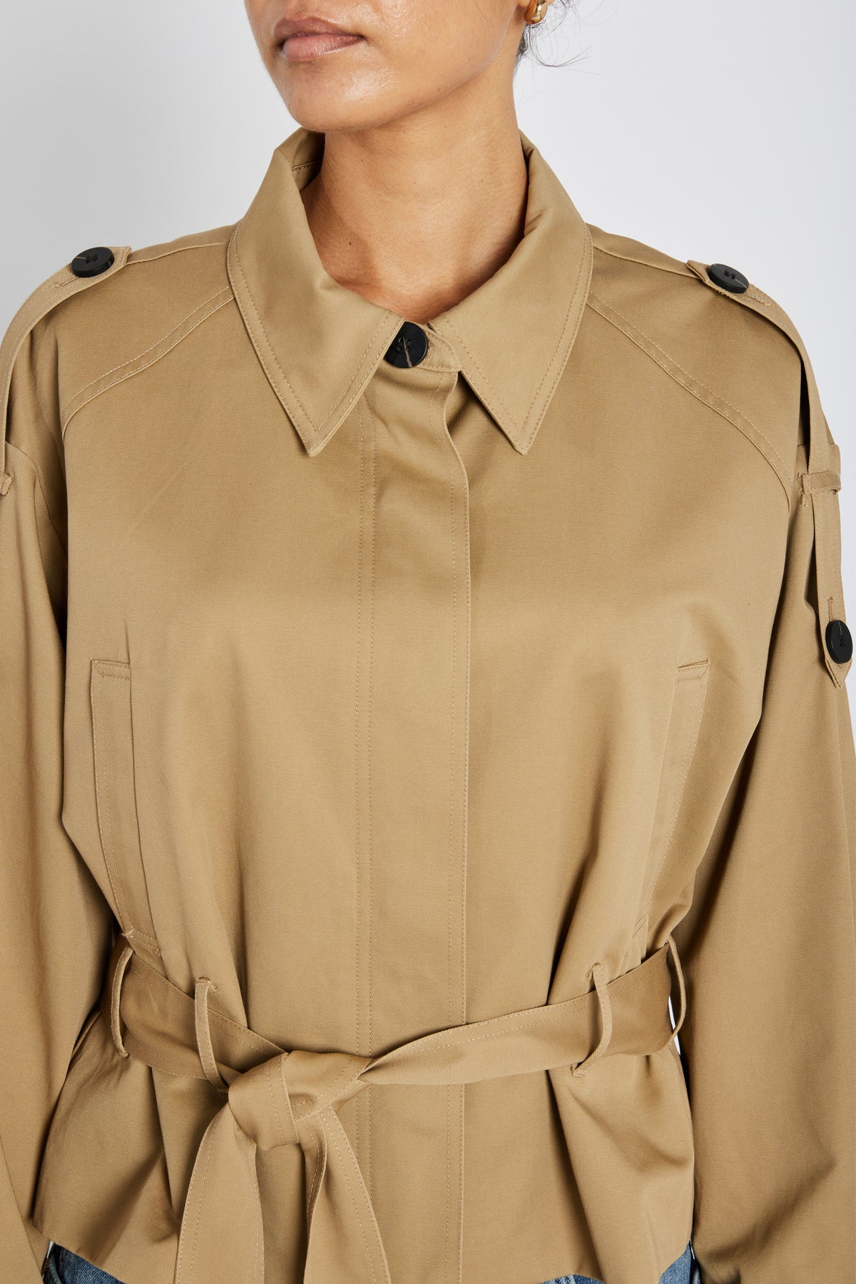 PonapeaBBTillia jakke er en kort jakke med almindelig pasform og et moderne, funktionelt udtryk. Inspireret af klassisk trench-design har den bælte i taljen og markante detaljer, der giver et stilrent og selvsikkert look.
