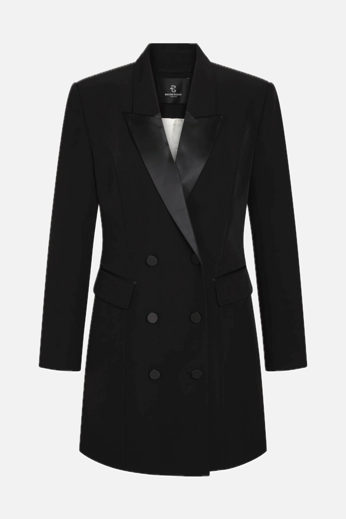 RubysusBBTuxia er en elegant, taljeret blazer-kjole, der kombinerer klassisk tuxedo-stil med moderne detaljer.