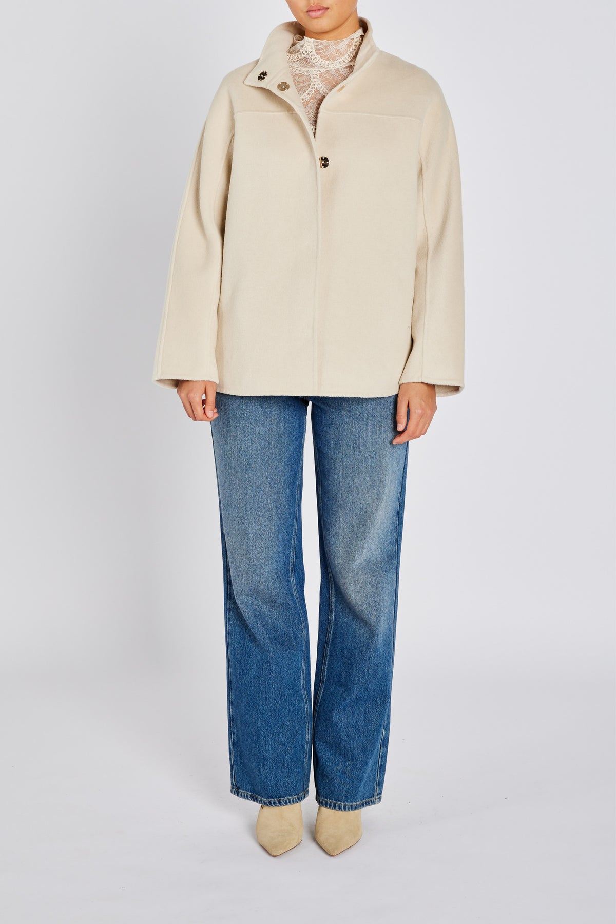 VioletBBVitha jakke er en kort jakke i uldblanding med lige pasform, skjult lukning og krave, der kan bæres både åben og lukket.