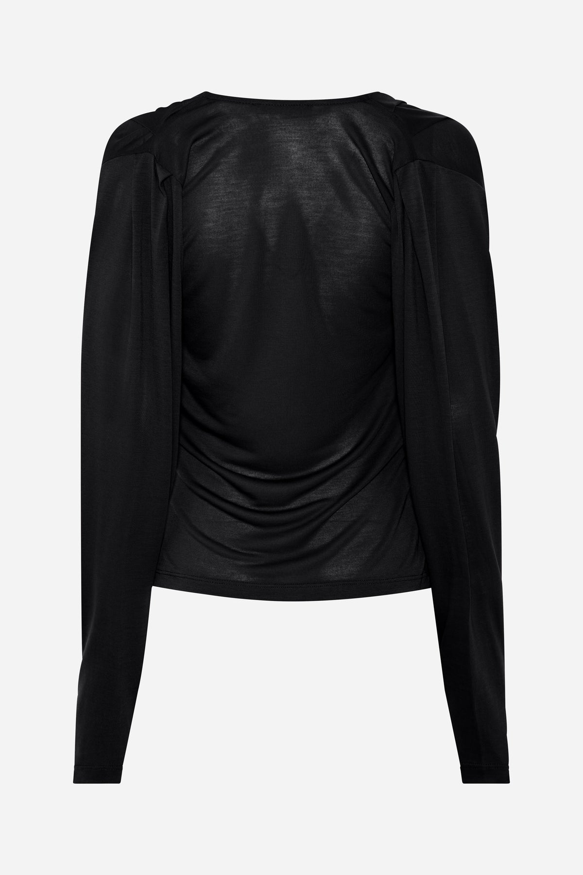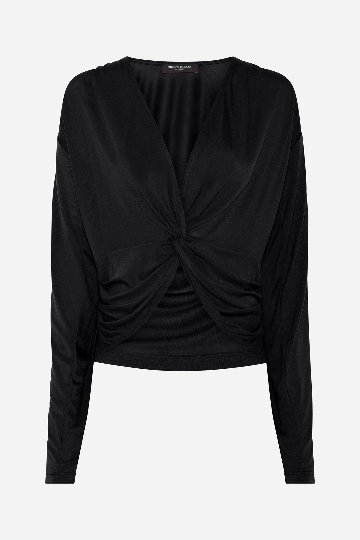 Vores KatkaBBGinna blouse er designet i en oversize pasform, har læg på venstre skulder og lidt vandfald ved krave.