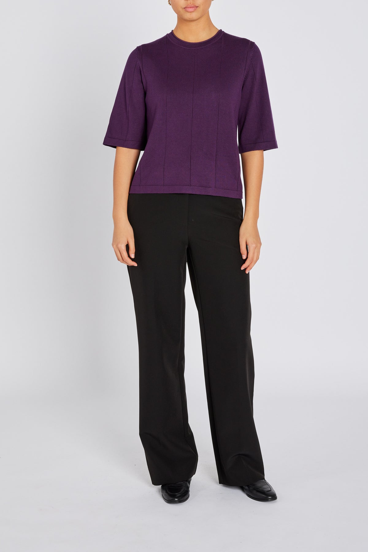 Style med højtaljede bukser og loafers til kontoret, eller med en nederdel og smykker til aftenbrug. En alsidig strik, der kombinerer enkelhed og moderne elegance.