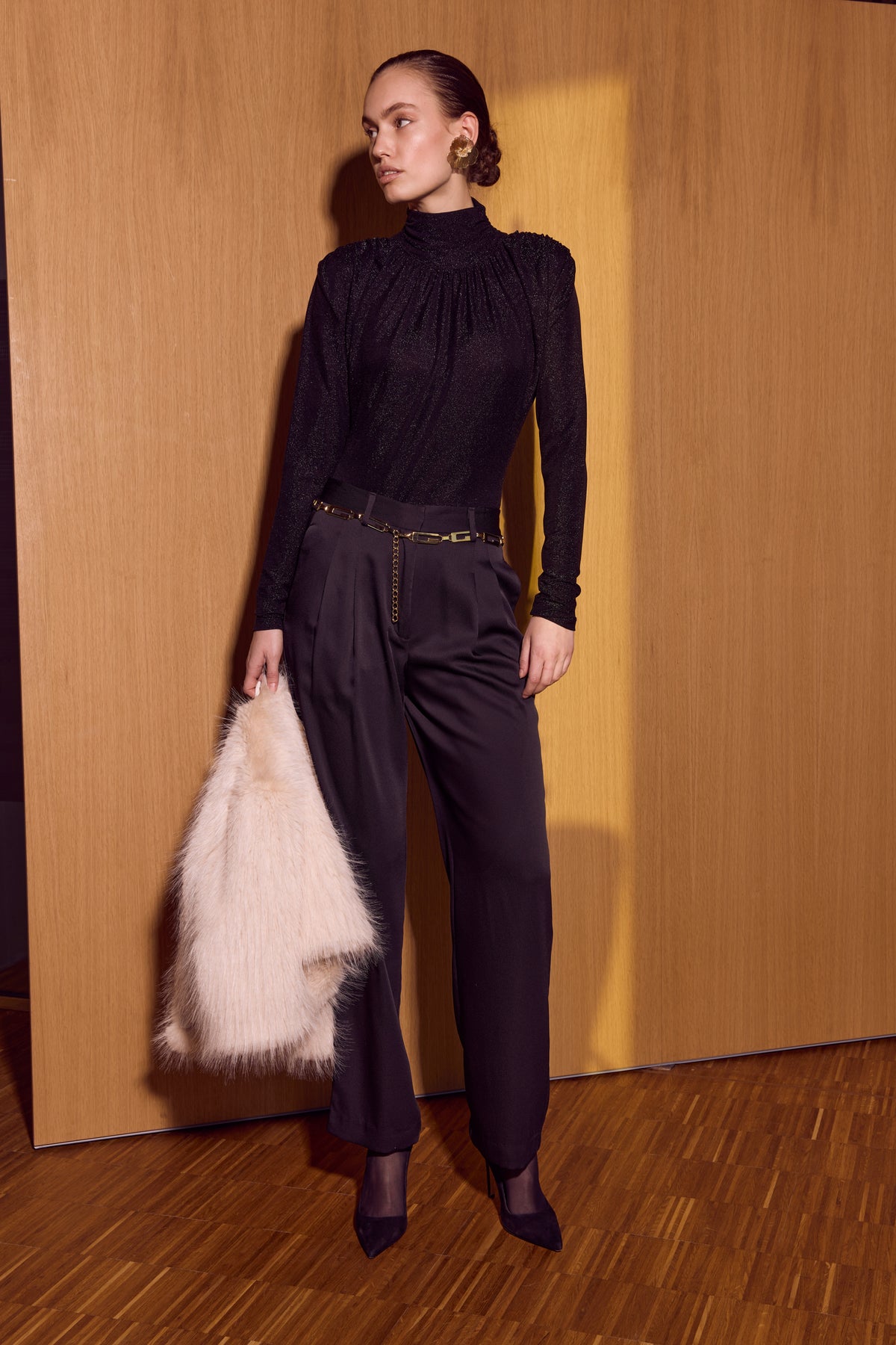 CedarsBBIvala bukser er elegante sorte bukser med lige ben og pressefolder. Designet er skabt til at fungere som nøglestykke fra kontor til aftenarrangement.