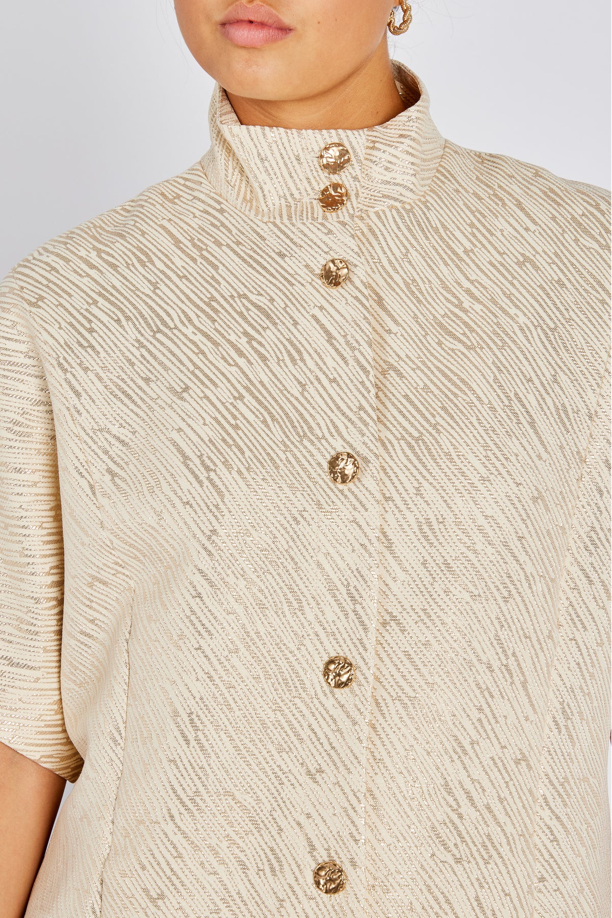 CocosBBCarly vest er en kort, ærmeløs vest med almindelig pasform, høj krave og dekorative knapper i skinnende guldtoner. Elegant og moderne.