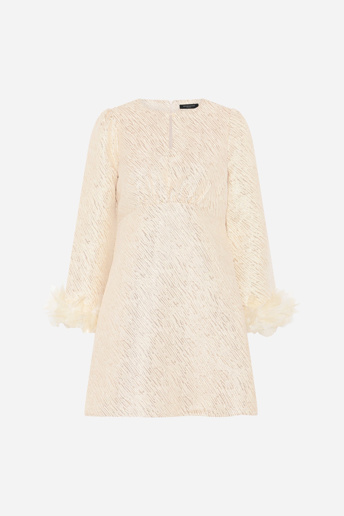 CocosBBUlja kjole er en kort kjole med almindelig pasform, lange ærmer og dekorative fjer ved manchetterne. Designet i skinnende materiale for et eksklusivt look.