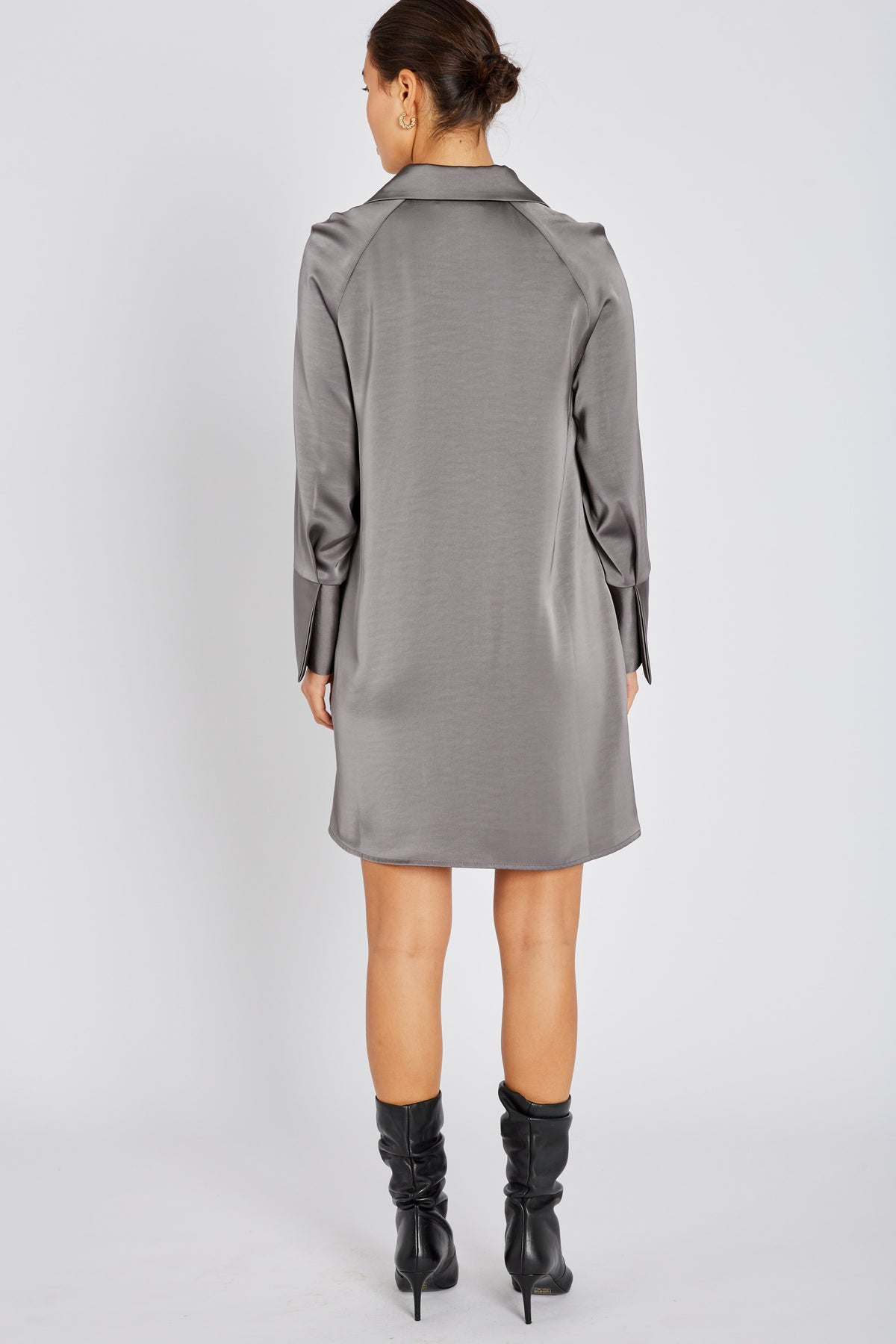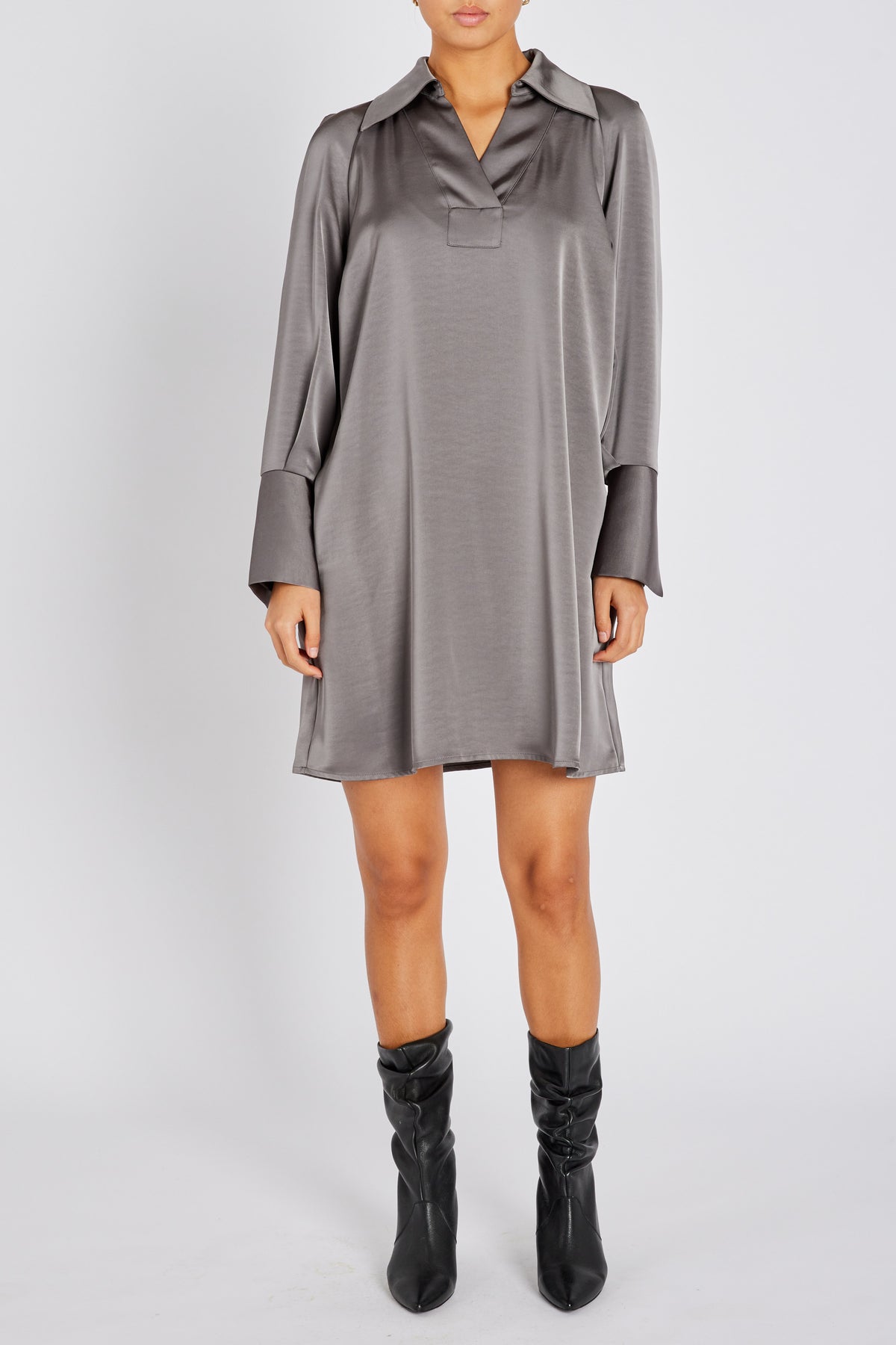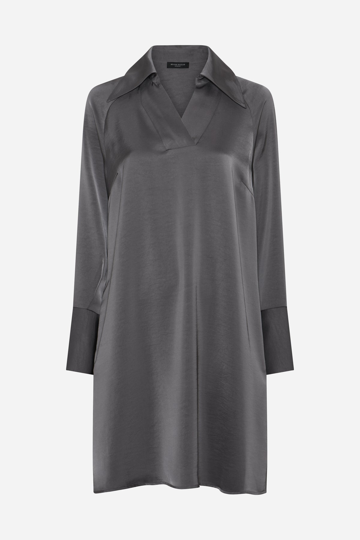 BeckiaBBKassidy kjole er en elegant kort kjole i satin-look med afslappet pasform og markeret krave. Designet balancerer enkelhed og sofistikeret glans, perfekt til både dag og aften.