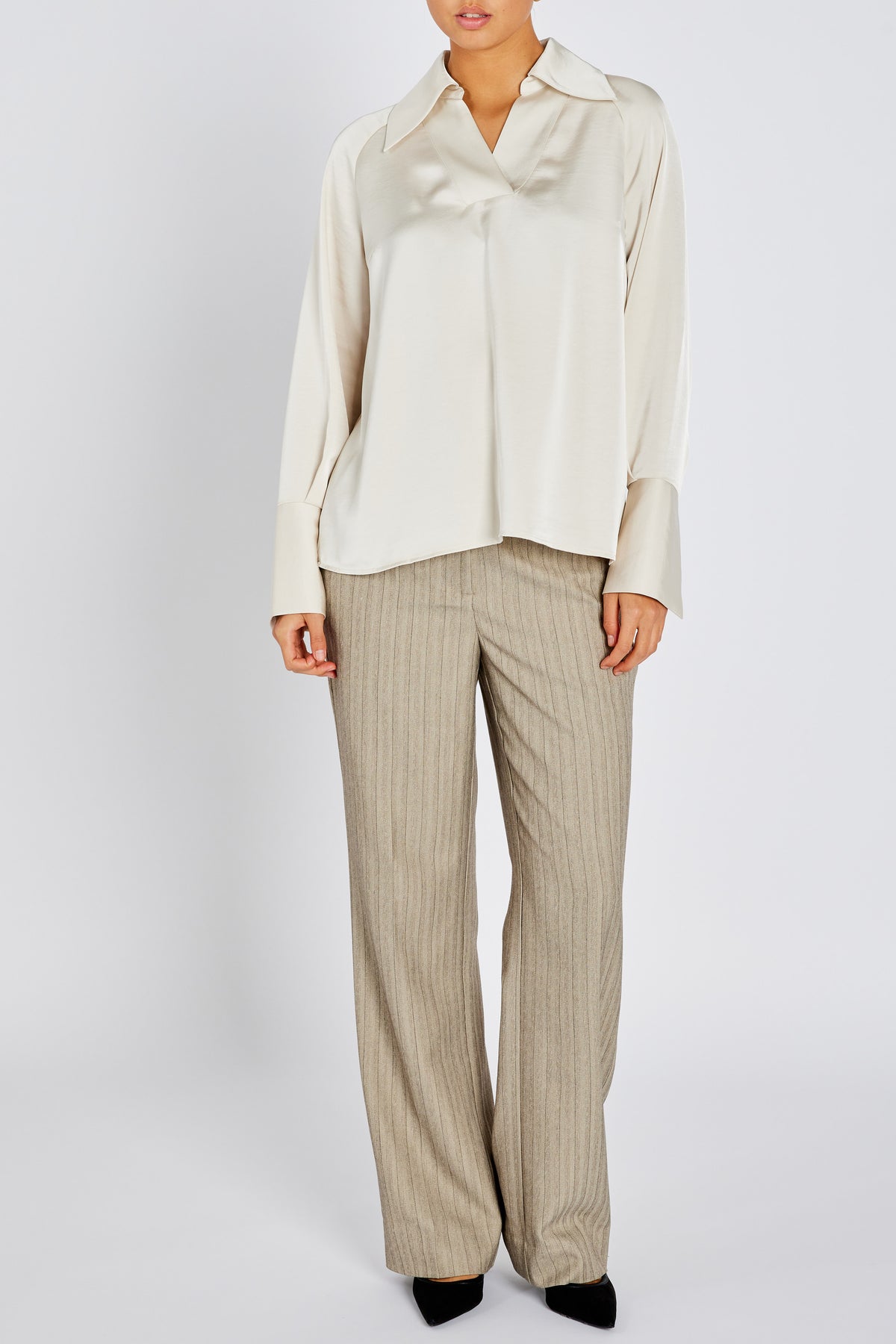 BeckiaBBKassindra bluse er en elegant bluse i satin-look med afslappet pasform og markeret krave. Det skinnende materiale giver et sofistikeret udtryk, ideelt til både arbejdsdagen og aftenens arrangementer.