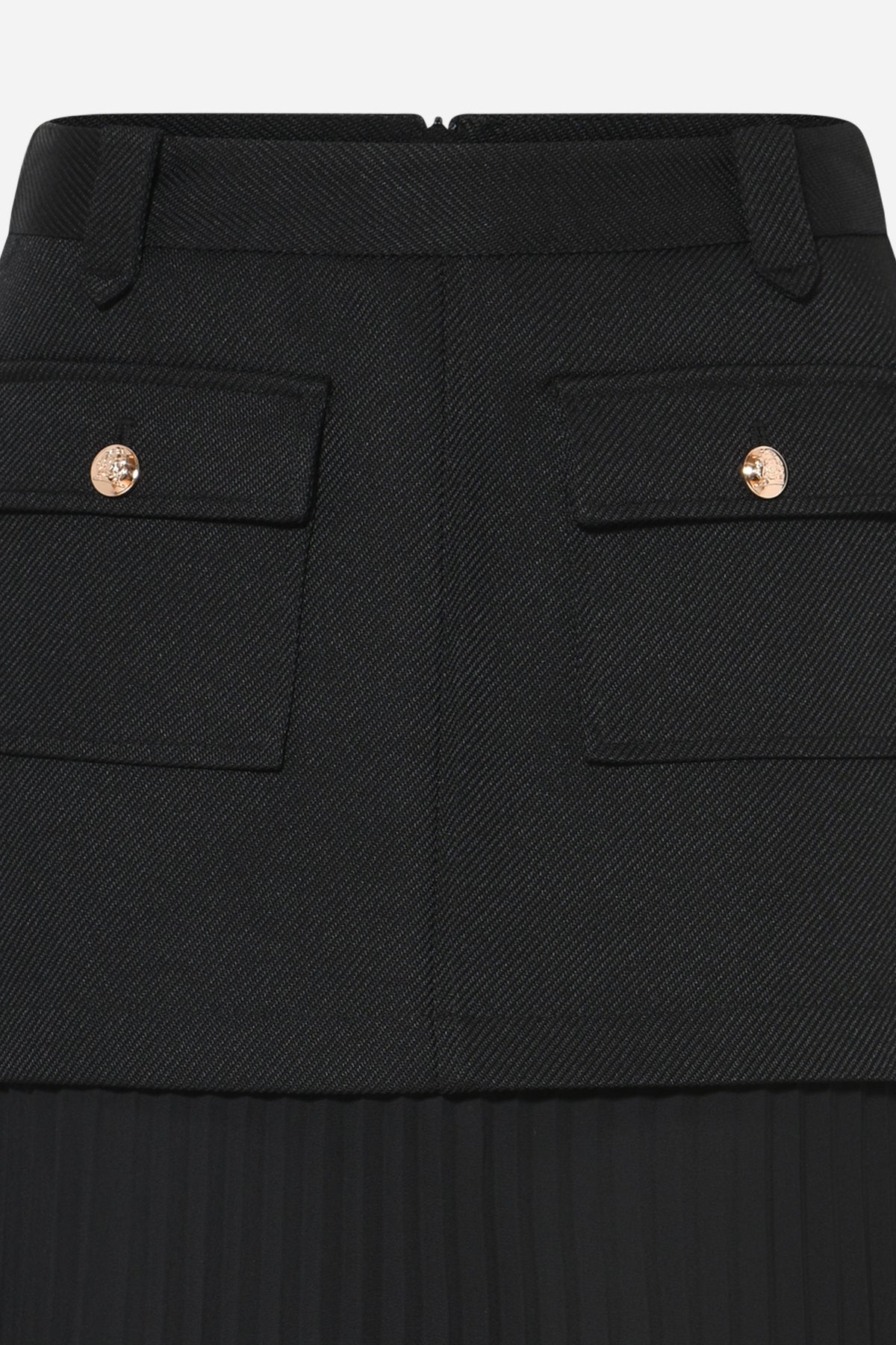 CalcareaBBShennia nederdel er en elegant og moderne nederdel, der kombinerer en klassisk, struktureret top med lommer og knapdetaljer og en feminin plisseret underdel. Den højtaljede silhuet giver et sofistikeret udtryk, mens plissé-delen tilfører lethed og bevægelse. Perfekt til både kontoret og festlige lejligheder, alt efter hvordan du styler den.
