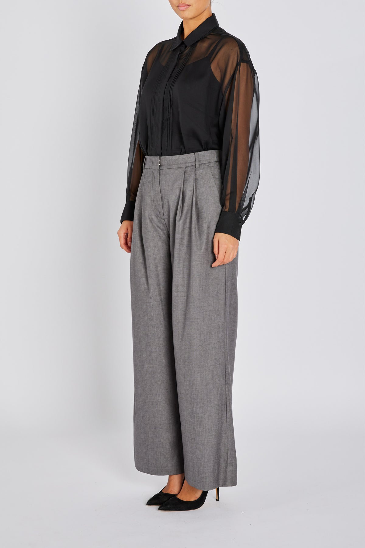 CoakumBBLouas skjorte er en gennemsigtig sort skjorte med klassisk krave og lodrette detaljer foran. Den lette struktur giver et moderne og sofistikeret udtryk, ideel til både dag og aften.