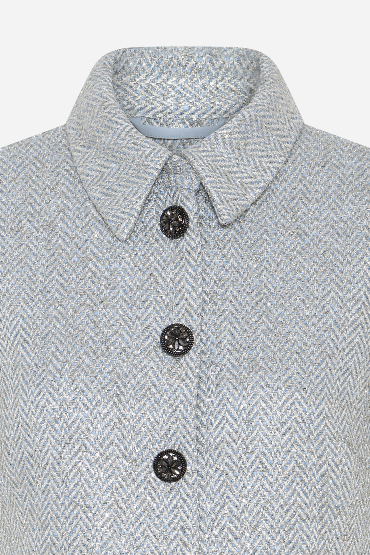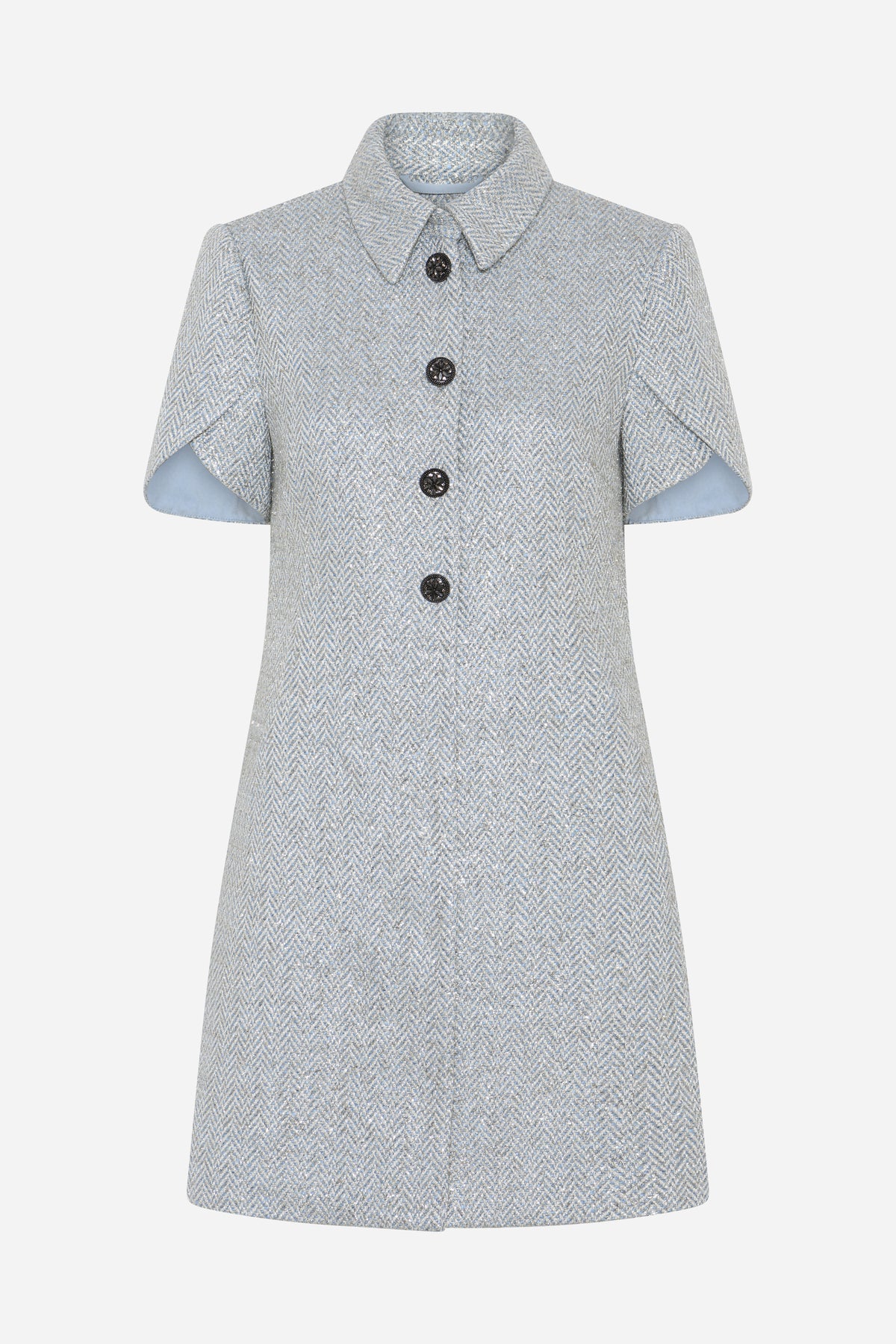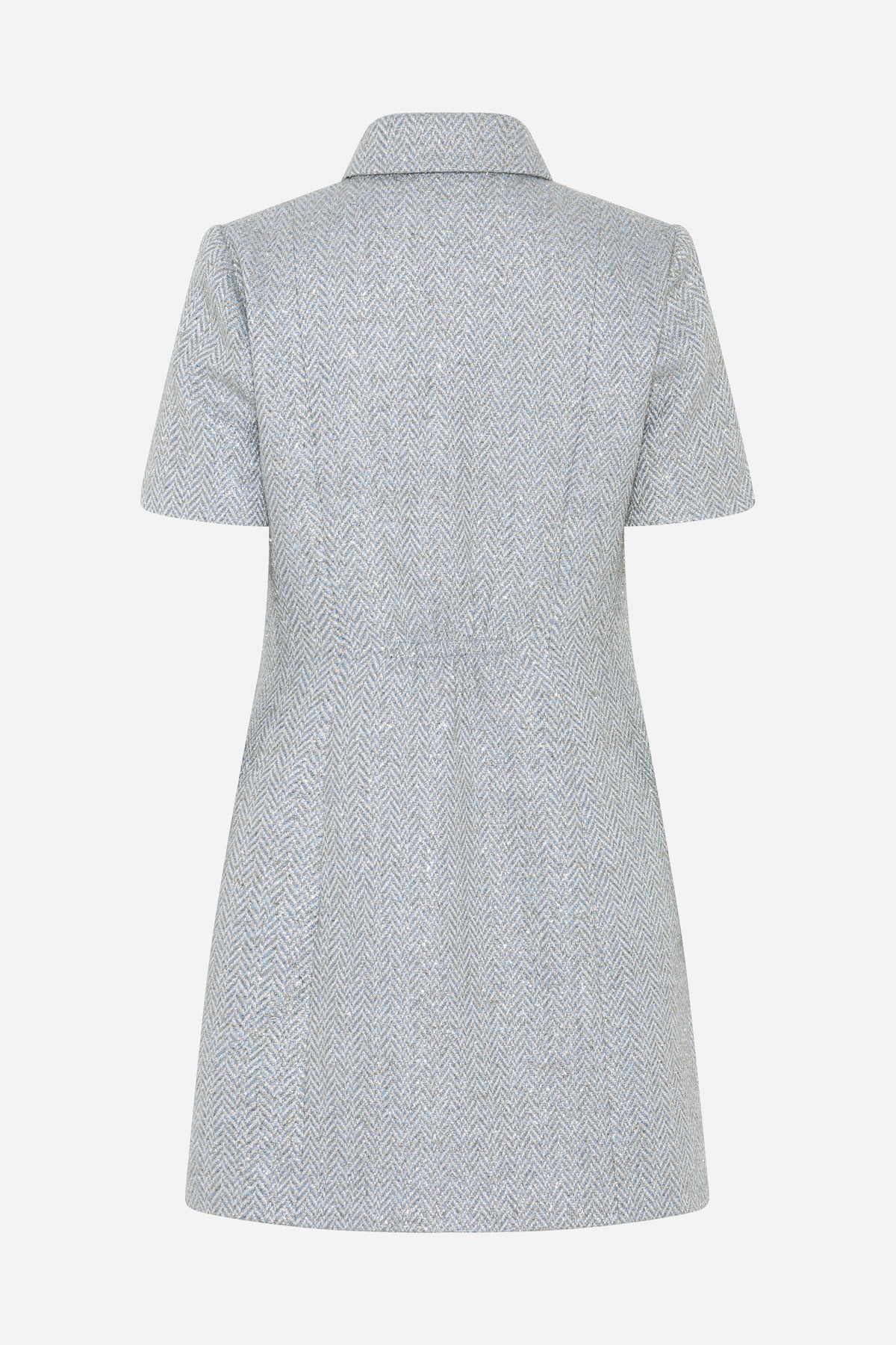 ConeBBZendia kjole er en kort kjole med almindelig pasform, korte ærmer og en elegant sildebensstruktur med karakteristisk Bruuns Bazaar detalje på knapperne.